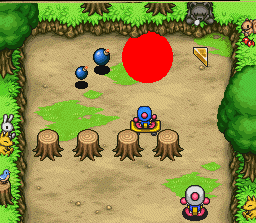 B-Daman is no exception. Here the 1st player is on the bottom. "X" sends a bomb north, "Y" west and "A" east. Just like Super Smash TV