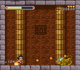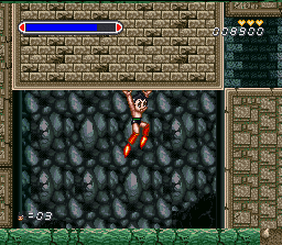 You begin with 3 hearts. Along the way extra hearts can be gained (notice in the above picture there are 4). Each heart accounts for two enemy attacks. Health refills and 1-UP's are also scattered throughout