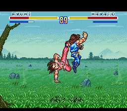 Options you can set the timer, pick 1 or 3 rounds, CPU difficulty 1-8, Speed of 0, 1 or 2, change buttons, etc. Weak/strong punch and kick, L to taunt and R to side-step. R is unique because you can avoid projectiles/attacks without blocking. Also, if you're close to your opponent, by pressing forward + R you'll 360 around them. If you're quick you can score a cheap hit or throw before they can react