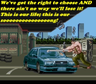 Final Fight is flawed, yes, but it remains fun to this day in spite of its warts and short cuts. Would I play it over some of the other brawlers, such as Ninja Warriors or The Combatribes? No, but as one of the first Super NES games released, and the second one I ever played, there's a certain charm and sentimental value to it that I can't discard. That plus the fact that I still enjoy it to this day. For its time, the graphics were pretty damn good. Despite some missing frames and semi-awkward animation, the characters are large and well detailed. Back in '91 this was, quite frankly, BIG mind-blowing visuals, especially coming off the rinky dink 8-bit Nintendo. One could tell, the new generation of games was officially upon us. This was just the beginning. Things could only get much better. And it did "UMM... are yooou... BIGDICK305?"