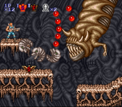 AND LOOK WHO'S BACK, JACK! In a true nod to the fans if there ever was one, Konami resurrected the nasty Para-Slug for Contra III, once more serving as Red Falcon's "mini-boss" terror in the alien's lair. He's not quite as intimidating and menacing as his first appearance was, but he still looks f*ckin' awesome