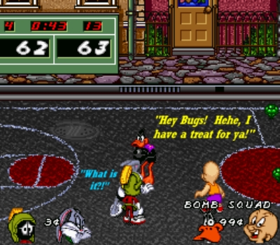 From all the cool special defensive moves to all the wacky and silly offensive techniques, Looney Tunes B-Ball comes quite highly recommended to any and all basketball fans. Even if you don't particularly care for the sport, but you like your bit of Looney Tunes, chances are, you'll dig this game, too. Its appeal goes beyond basketball. It is a perfect example of what I like to call a sleeper hit. It never got much press and praise back in the day, but y'kno, behind closed doors everyone I knew LOVED it and no one ever had a bad thing to say about it. If you missed out on LTBB, don't hesitate to give it a chance. It's not the greatest game around, but there's something about it. Simple, competitive, looney. It also stands the test of time featuring those timeless and iconic cartoon characters. Chris Mullin and Patrick Ewing are now outdated on my NBA Jam games, but Bugs Bunny will never go out of style. It's now almost been 16 years since Looney Tunes B-Ball came out, and when I bought it nearly five years ago, I was very happy to see it played as well as I remembered it back in 1995. Sometimes memories cloud your judgment of these old games. Not so here. I could be 50 one day, and LeBron James' son could be dominating the NBA, but I'll still be plenty content using ol' Bugs Bunny and friends in Looney Tunes B-Ball