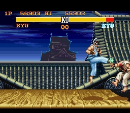 Ryu's stage is simply classic. Fighting on top of a roof near a dojo which looms in the background, it's beautifully simple