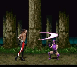 You can throw her Sai either on the ground or in the air. Mileena can also tuck and roll with the best of 'em. Her Teleport Kick can really surprise an overly aggressive opponent