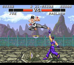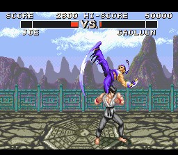 Still, I will always have a special spot in my gaming heart for this. 1st import ever, and also 1st SNES game I bought in my 'rebirth.' But I have to be firm and not let petty sentimental memories get in the way of my reviewing integrity. Released in early '93, this is not passable. Maybe if it came out a year earlier, but mind you, this came out months after the amazing Street Fighter II -- there's no excuse for such a lackluster effort!