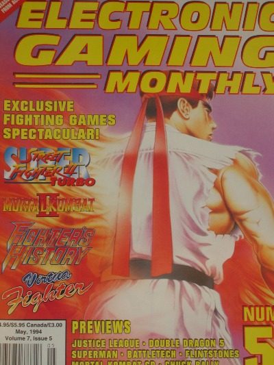 Wonder no more. In March 1994 EGM's April '94 issue featured Fighter's History on the cover. I was so excited when this issue arrived in the mail. The moment I had been long waiting for! All we got was a half page preview of the import version, with grainy shots I might add, but I didn't care -- I was too happy to finally see some news. I felt like a trekkie who just had his underwear signed by all prominent cast members