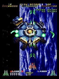 You gotta love first level bosses in space shooters. They look intimidating but are very easy, yet set the tone for the nastier bosses to come. And killing 'em always satisfies!